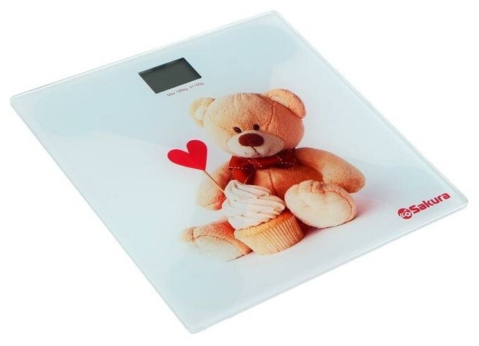 Весы напольные SAKURA SA-5071 BR (180 кг, ЖКД, ultraslim стекло) медвежонок интересное: