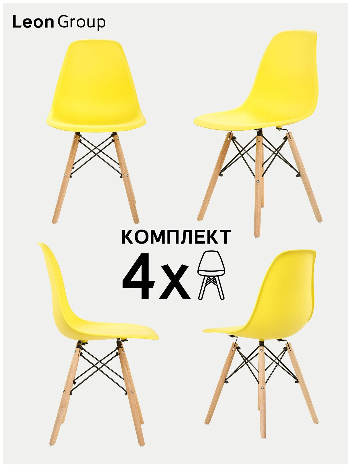 Купить Стулья LEON GROUP в стиле EAMES DSW для кухни со спинкой с деревянными ножками, 4 шт, желтый