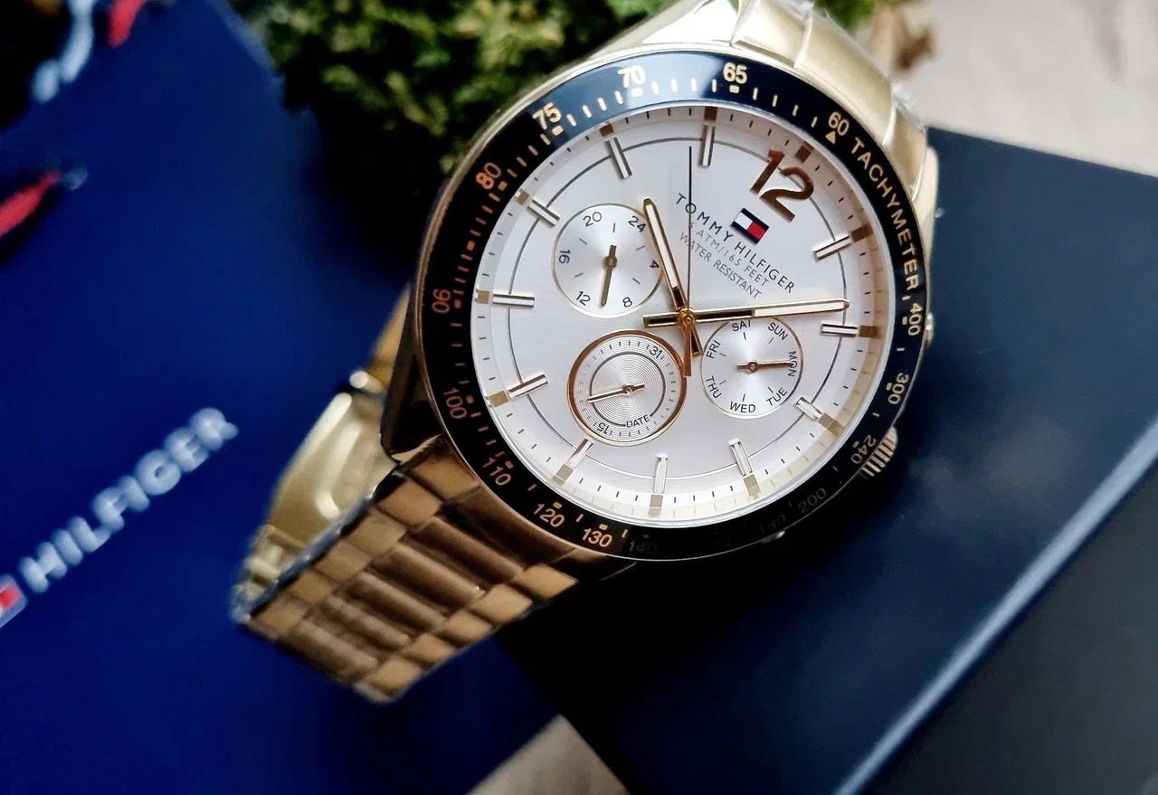 Наручные часы TOMMY HILFIGER мужские Tommy Hilfiger 1791121 кварцевые, будильник, тахиметр, подсветка стрелок, водонепроницаемые, золотой