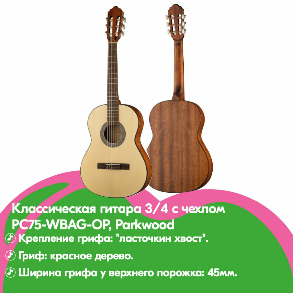 Классическая гитара 3/4 PARKWOOD PC75-WBAG-OP +чехол интересное: