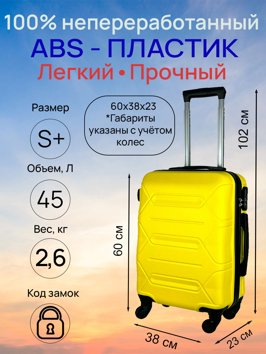 Ниже Вы можете прочитать отзывы на Чемодан, Размер S+, 45 литров, Габариты: 60x38x23, кодовый замок, 4 колеса, цвет: Желтый, ознакомится с подробными характеристиками, посмотреть интересные обзоры и фотографии на Чемодан, Размер S+, 45 литров, Габариты: 60x38x23, кодовый замок, 4 колеса, цвет: Желтый.