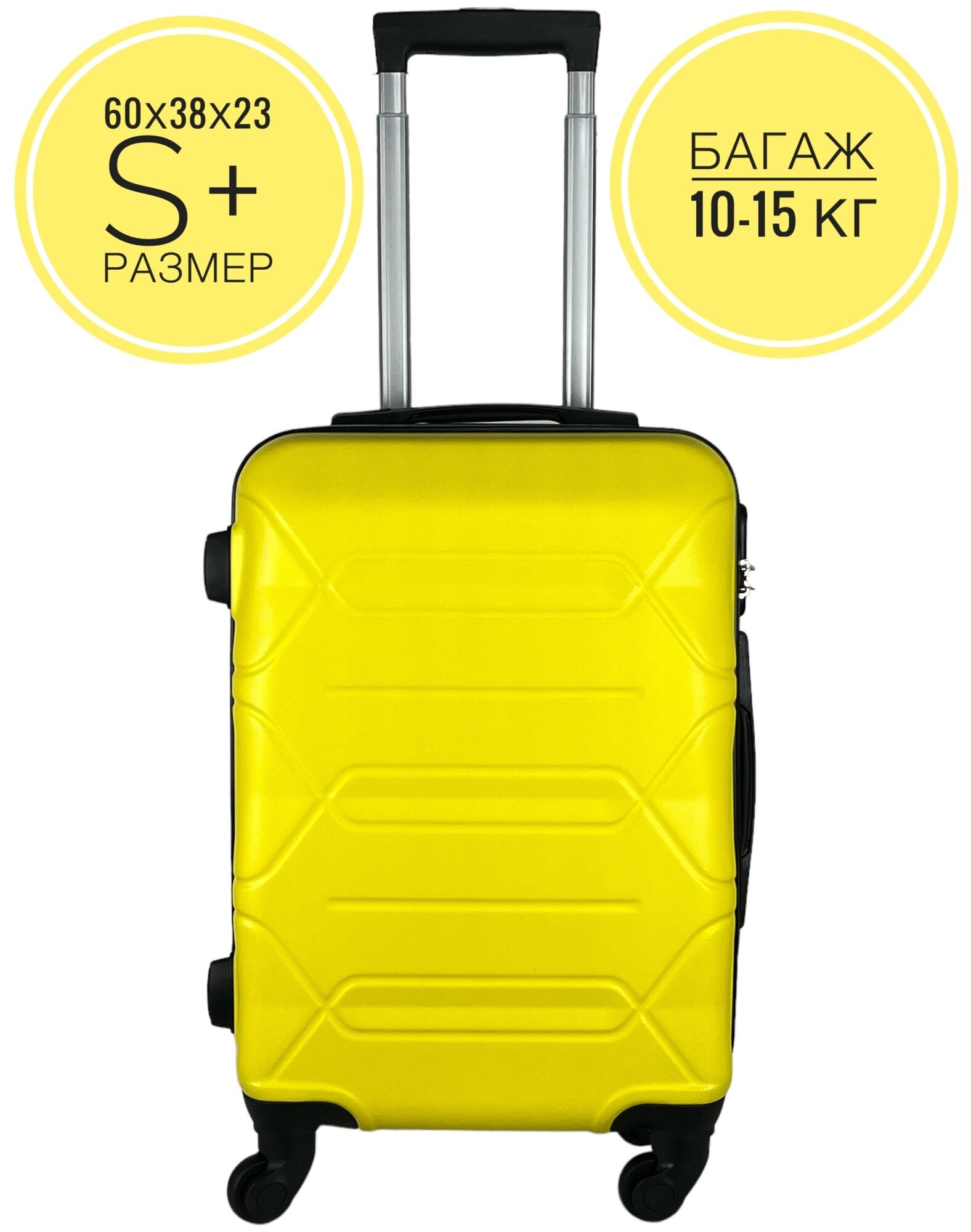 Купить Чемодан, Размер S+, 45 литров, Габариты: 60x38x23, кодовый замок, 4 колеса, цвет: Желтый