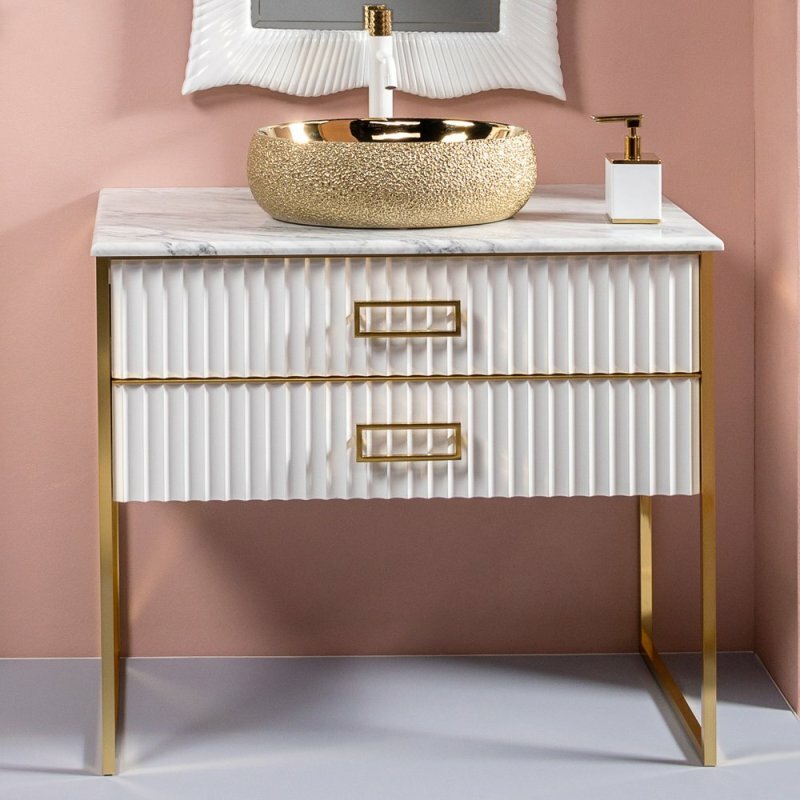 Тумба под раковину Armadi Art Monaco 867-100-WG 100х74 белый глянец, золото