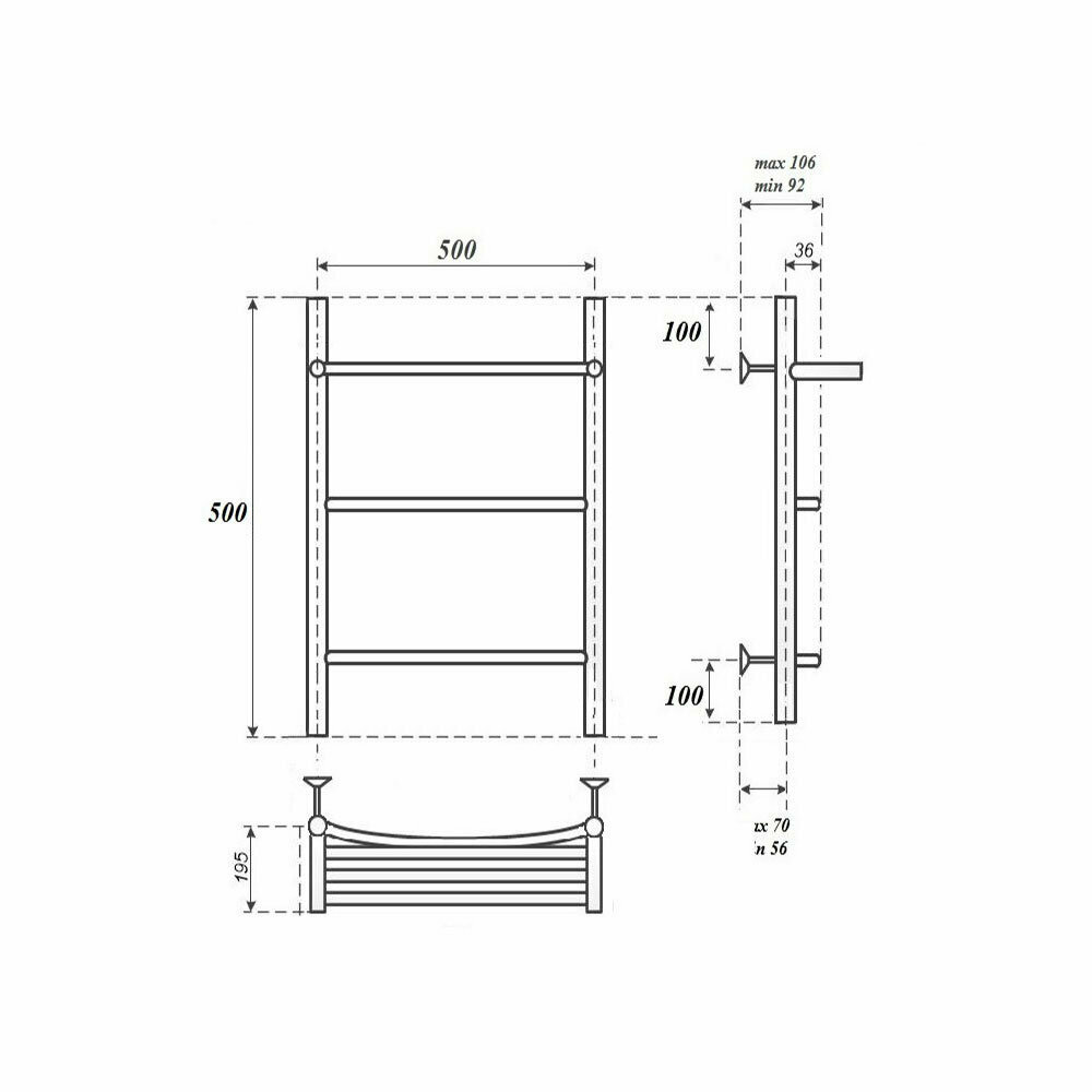 Полотенцесушитель водяной Point PN04155P П2 500x500 с полкой, хром