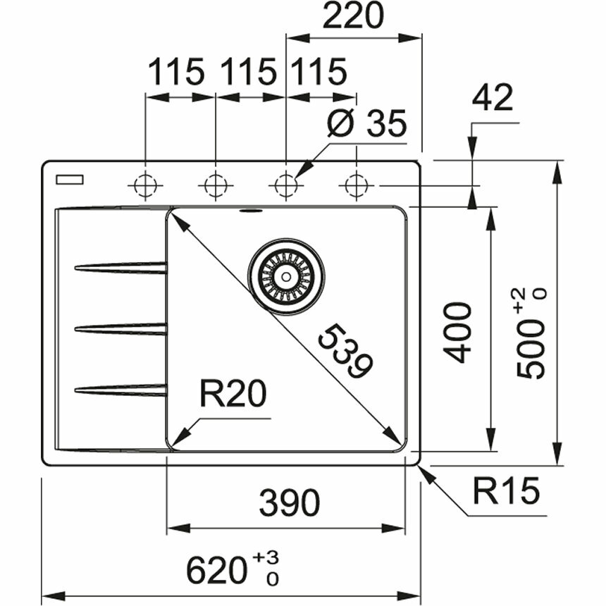 Franke Мойки Franke/ Best, Centro, Мойка CNG 611/211-62 TL, Fragranite+, База 45 см, на столешницу, серый камень, чаша справа