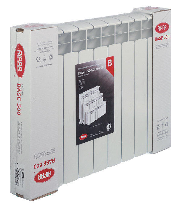 Радиатор биметаллический Rifar Base 500 мм 10 секций 1 дюйм боковое подключение белый