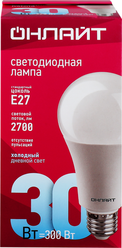 Лампа светодиодная LED Онлайт, E27, A70, 30 Вт, 4000 K, холодный свет интересное: