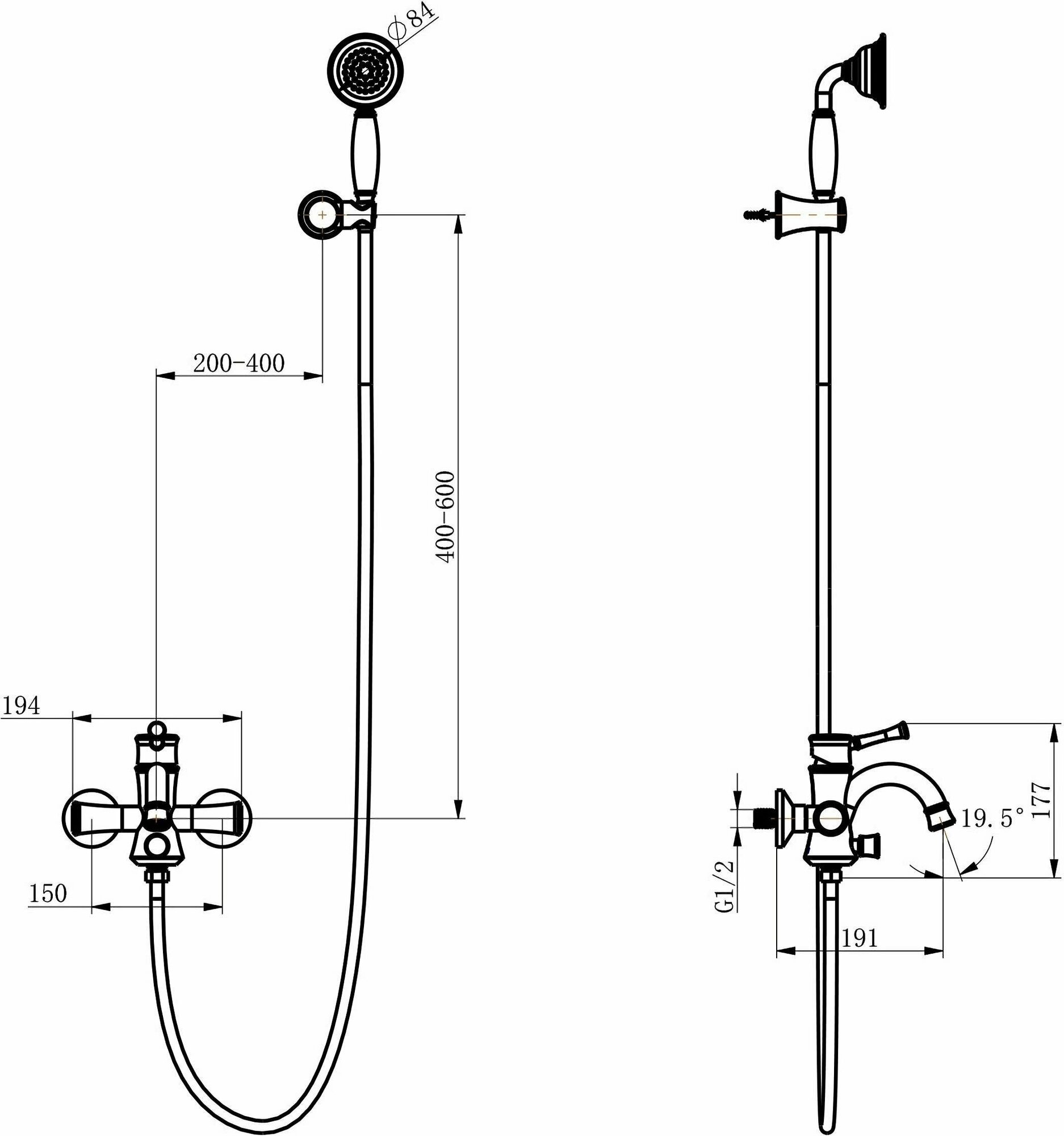 Bronze de Luxe Душевой комплект Bronze de Luxe Scandi 14582BR с внутренней частью, бронза