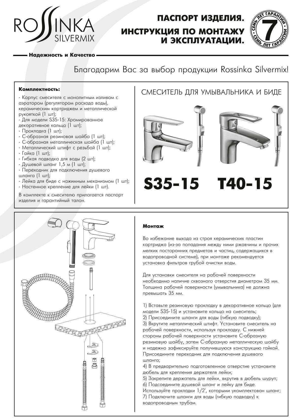 Смеситель Rossinka T40-15 для раковины и биде