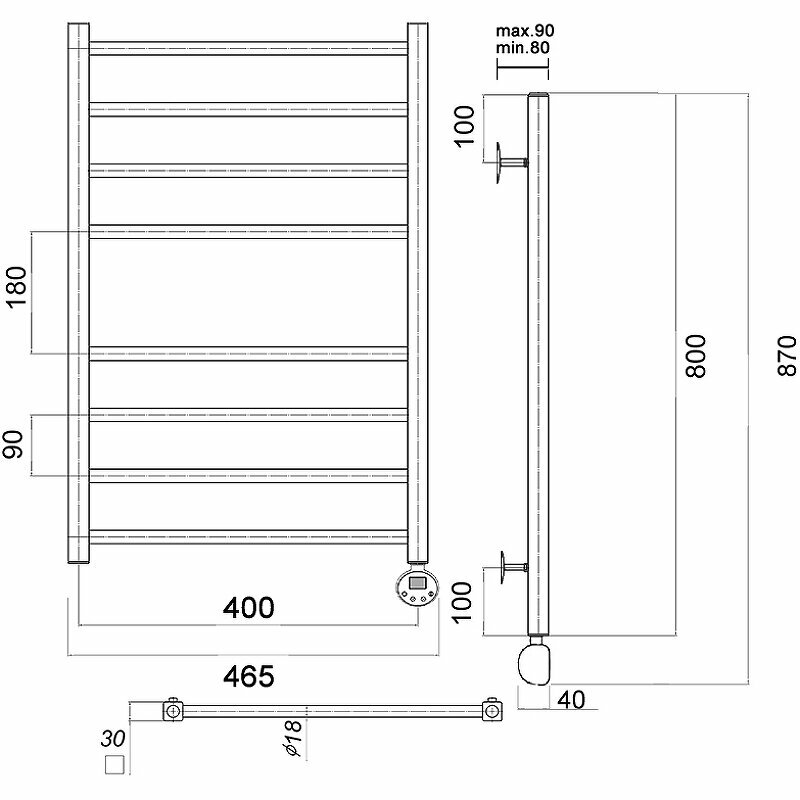 | Дополнительная информация | Полотенцесушитель, стойка крепления - 4 шт., кран Маевского 1 шт., заглушка -1 шт. Тэн с цифровым терморегулятором |