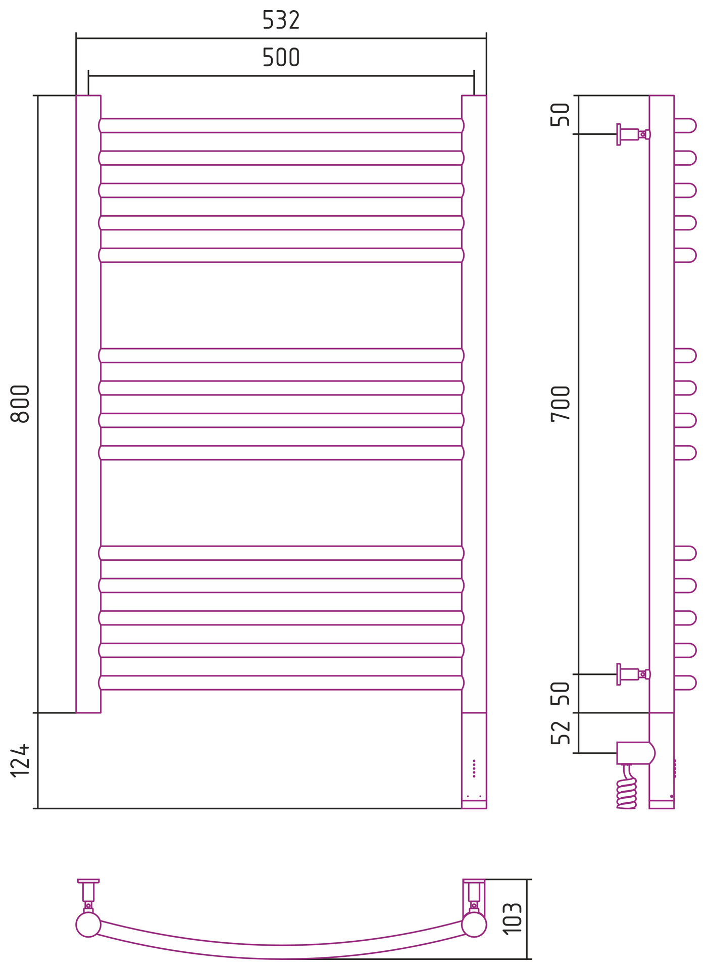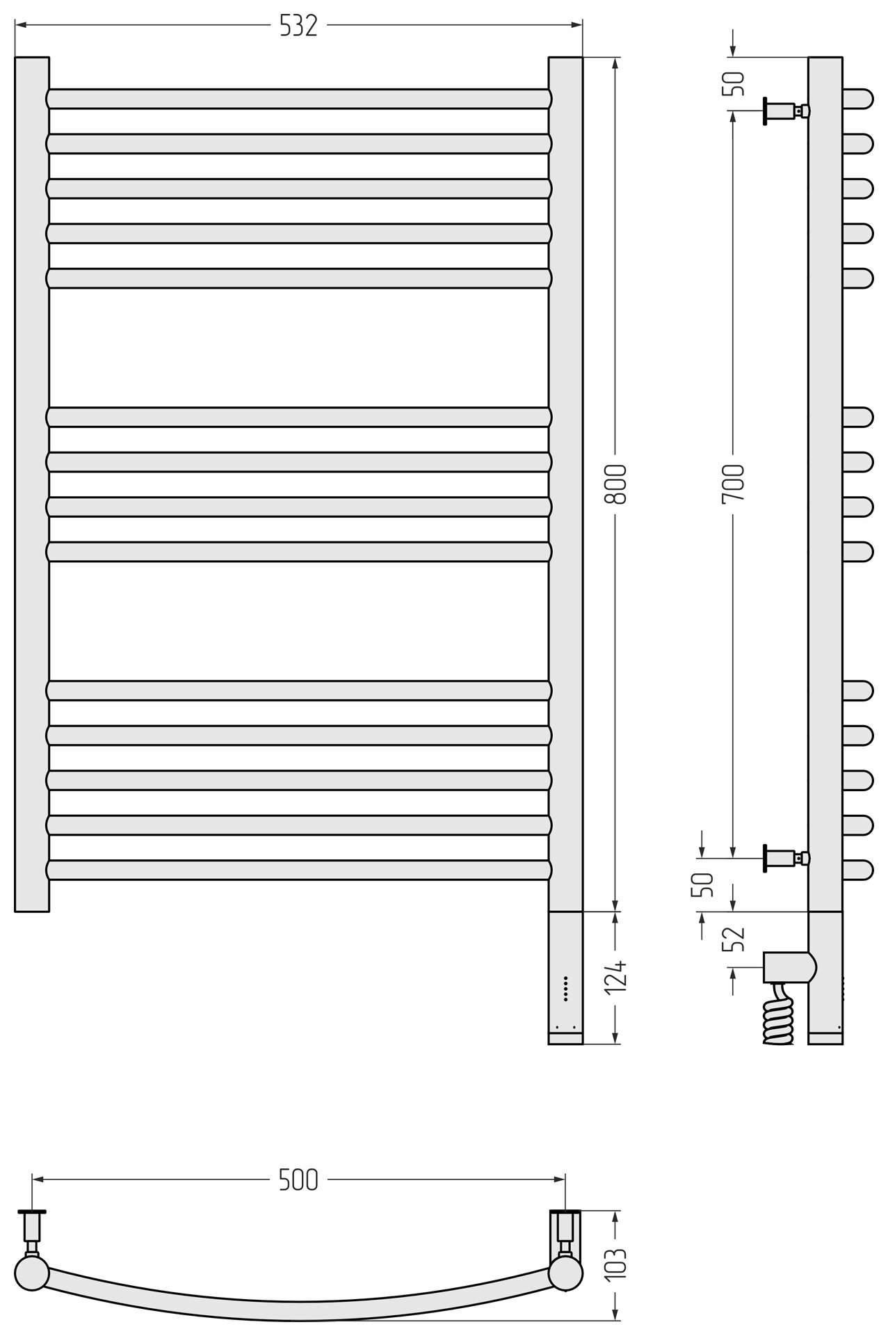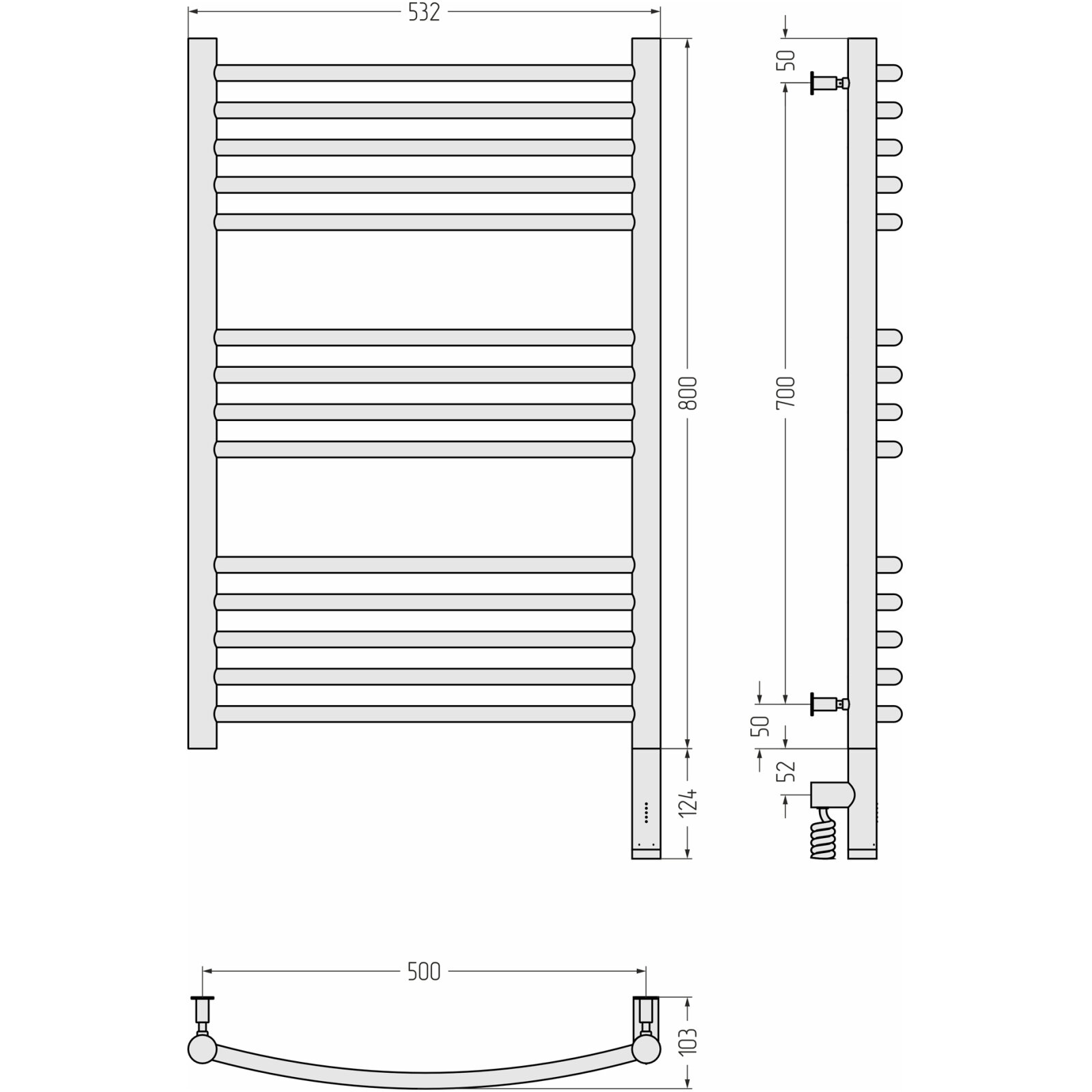 Полотенцесушитель электрический 800x500 белый матовый МЭМ правый, перемычка выгнутая Сунержа Богема 3.0 30-5803-8050