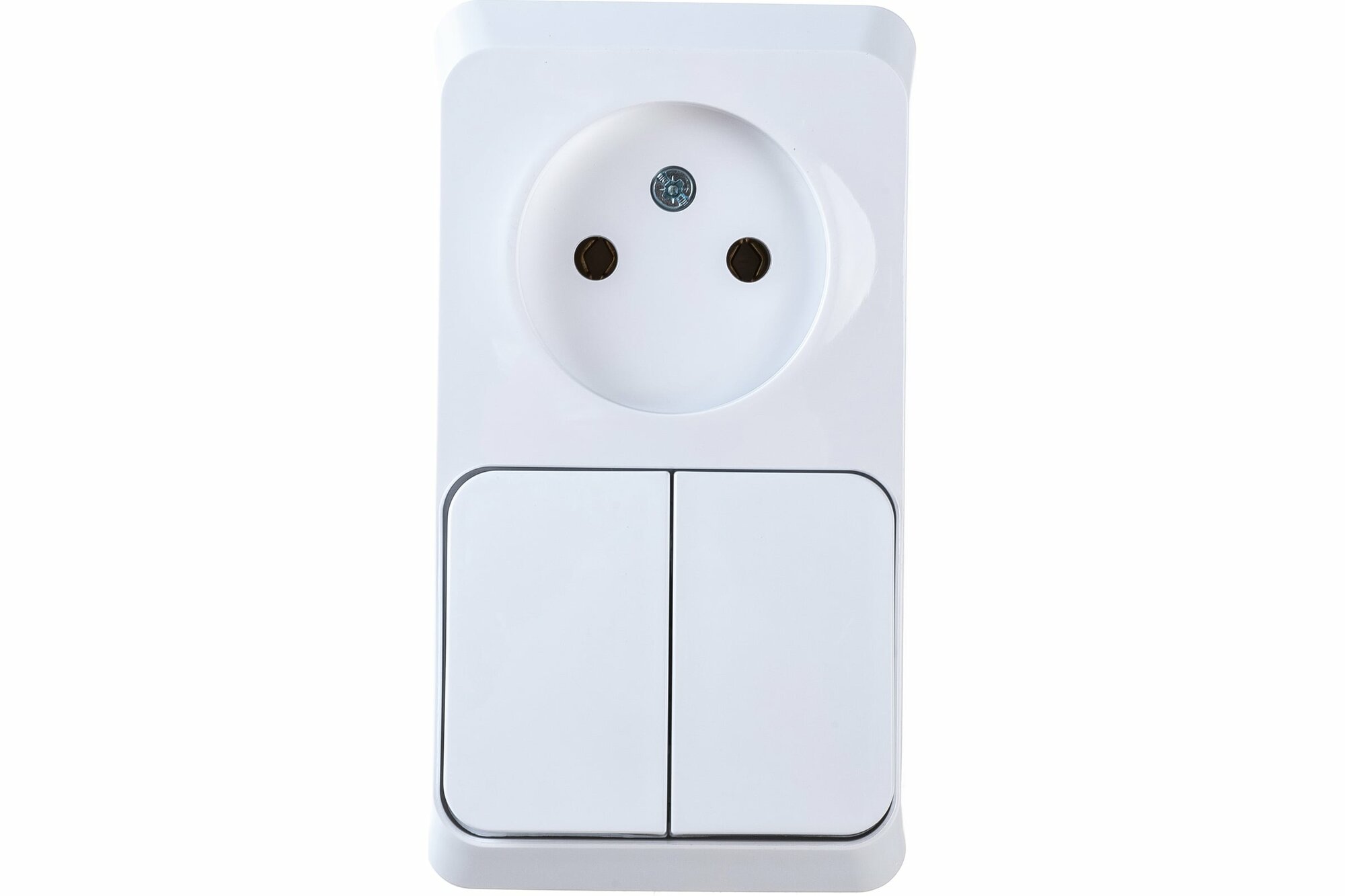 Блок выключателя с розеткой Systeme Electric Этюд BPA16-205B двухклавишный открытая установка белый без заземления IP20