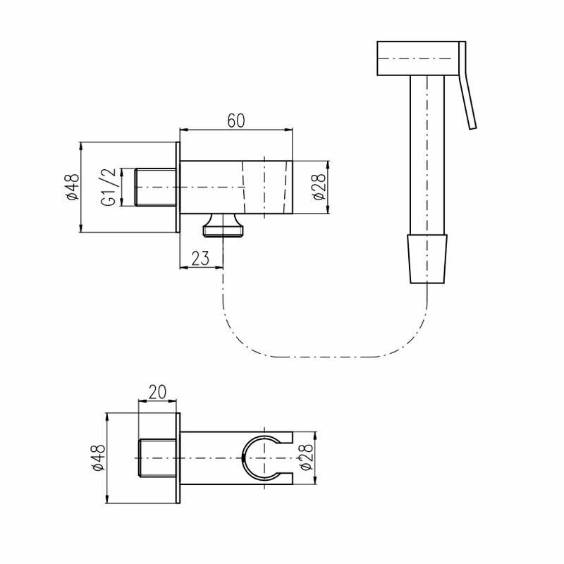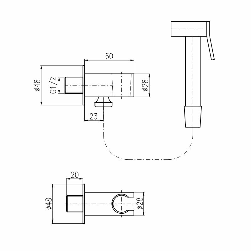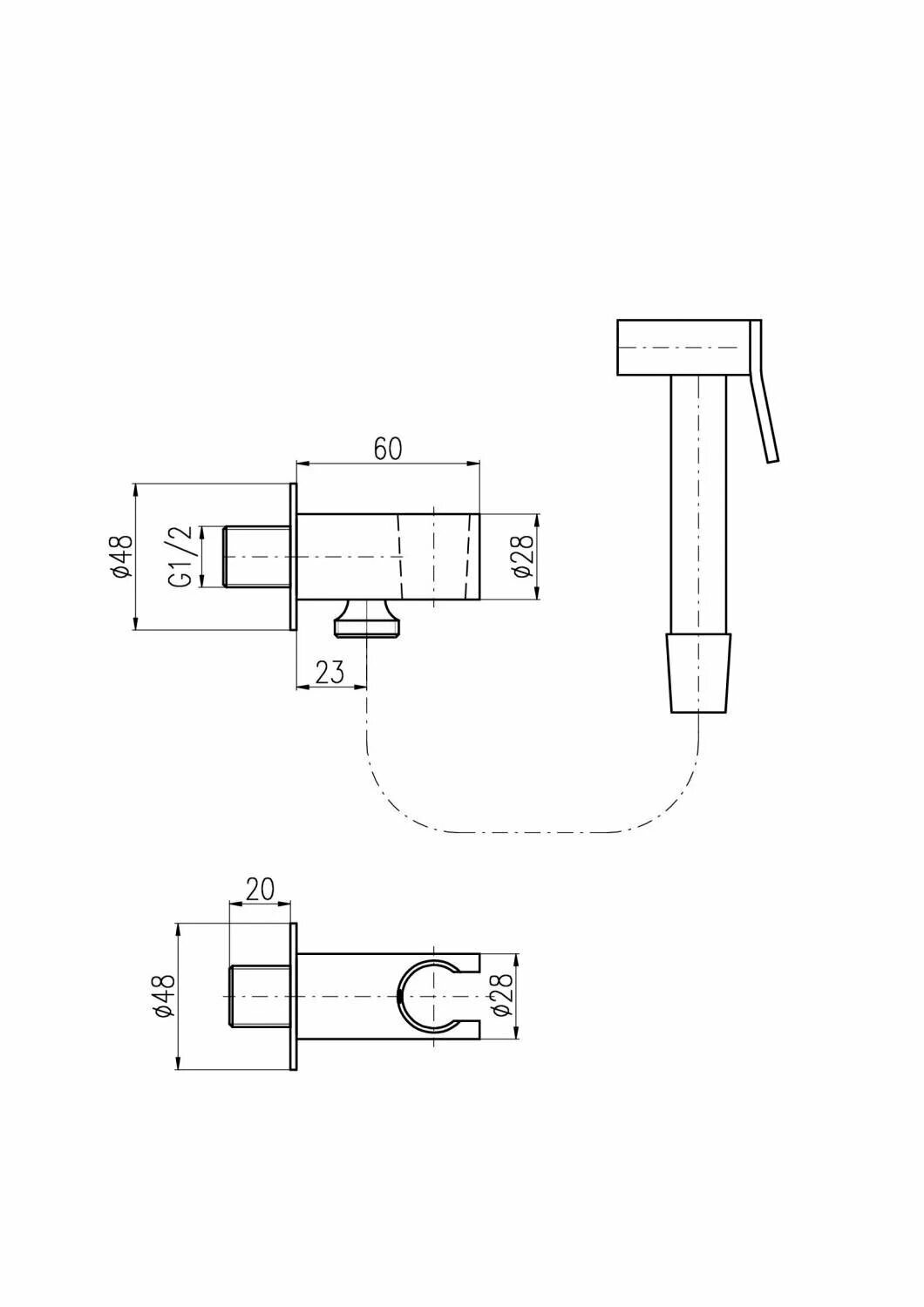 SK0054/1 Душевой гигиенический комплект и проточный держатель с STOP вентилем RAV Slezak