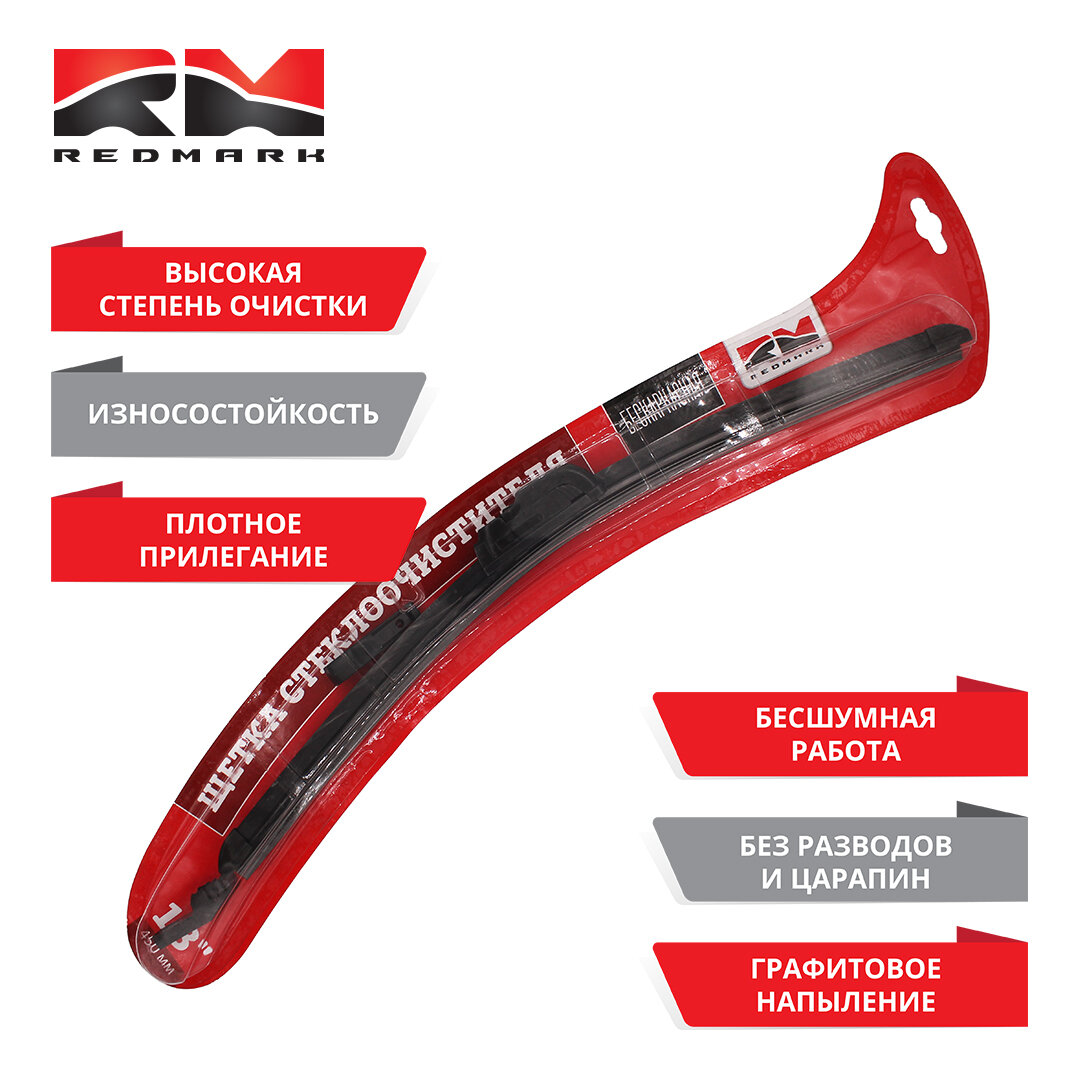 Щетка стеклоочистителя 450 мм (бескаркасная) "RedMark" интересное: