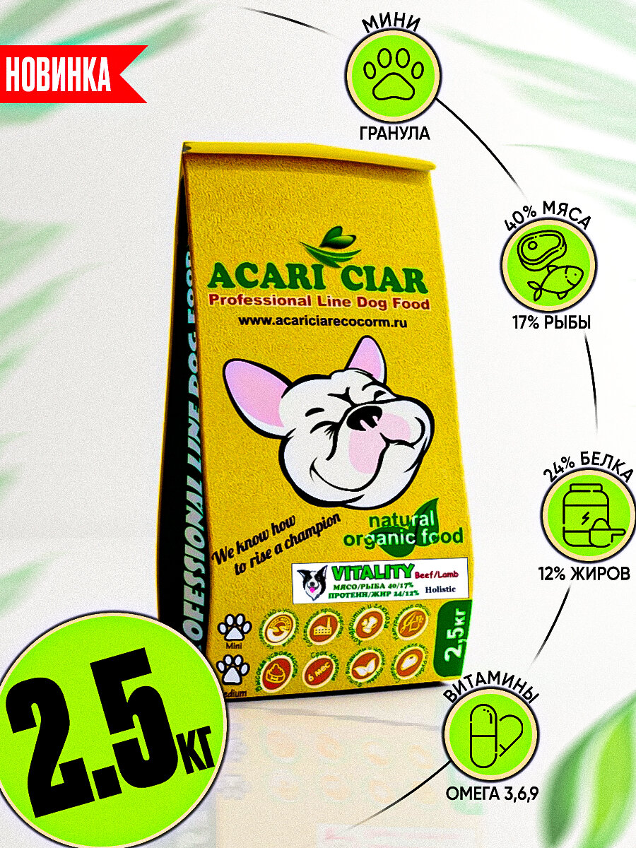 Корм сухой Acari Ciar VITALITY BEEF/LAMB Holistic 2.5 кг (Мини гранула) Холистик для собак всех пород интересное: