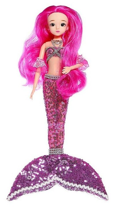 Кукла музыкальная Happy Valley "Волшебная русалка" шарнирная, звук, свет, малиновый волос