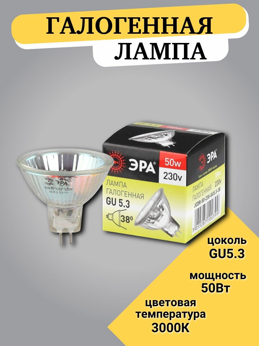(10 шт.) Галогенная лампочка ЭРА MR16 50Вт 230В GU5.3