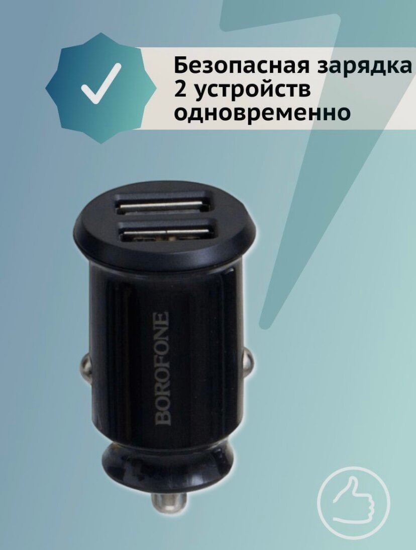 Автомобильное зарядное устройство (АЗУ) Borofone BZ8 (2 USB) 2.4 А, черный