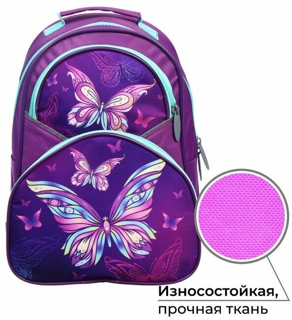 Рюкзак школьный, 37 х 26 х 13 см, эргономичная спинка, Calligrata АН "Бабочка" интересное: