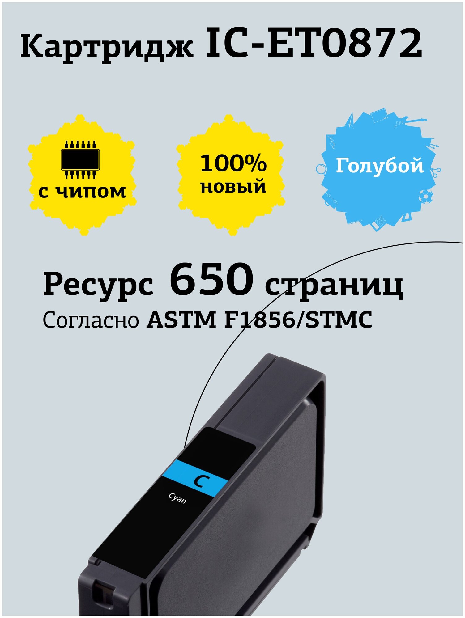 Картридж IC-ET0872 для Epson Stylus Photo R1900, голубой, с чипом