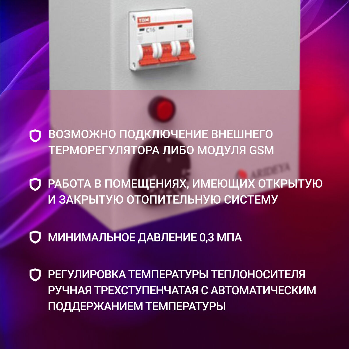 Котел электрический настенный ARIDEYA ЭВП-6, 6 кВт, 3 режима мощности