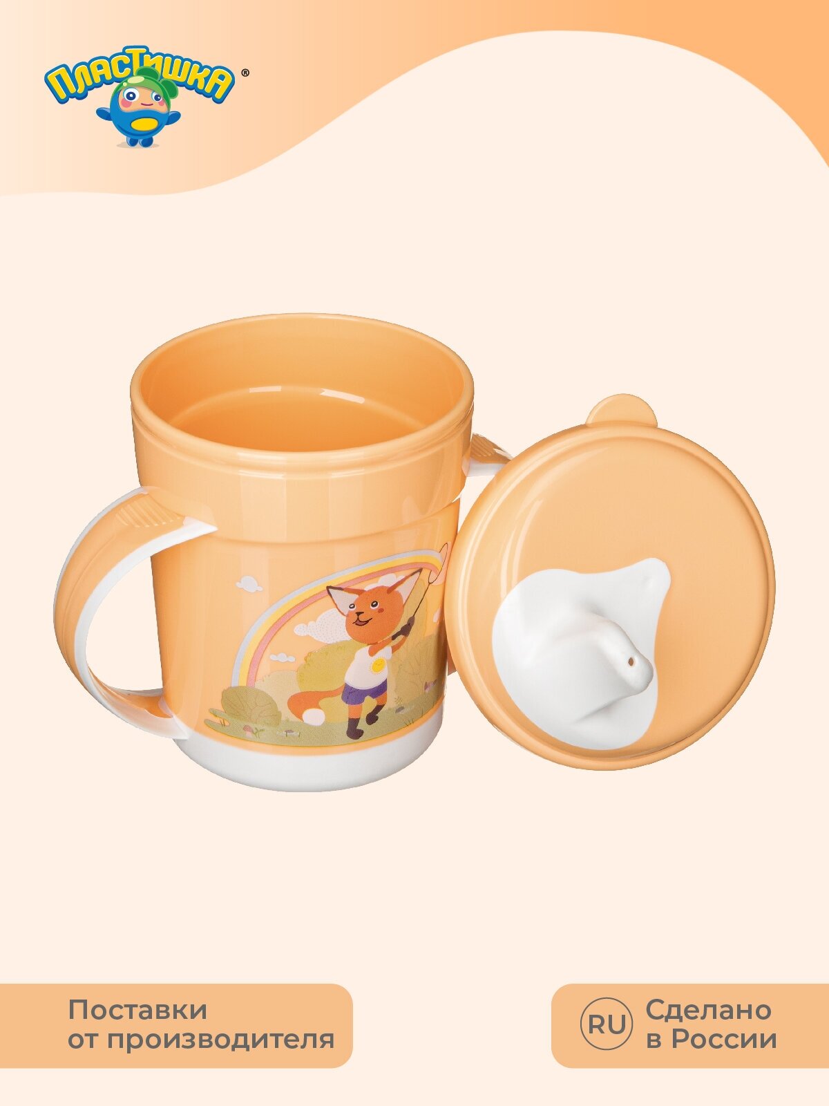Поильник с ручками и декором, 320 мл, оранжевый Пластишка 431313208