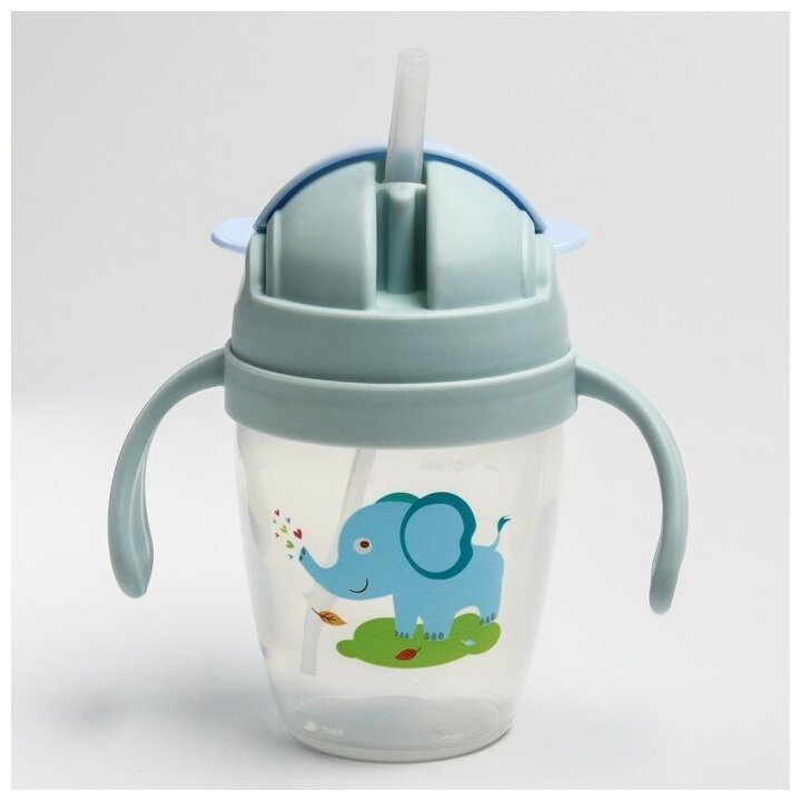 Поильник с силиконовой трубочкой, 200 мл,, с ручками, цвет микс