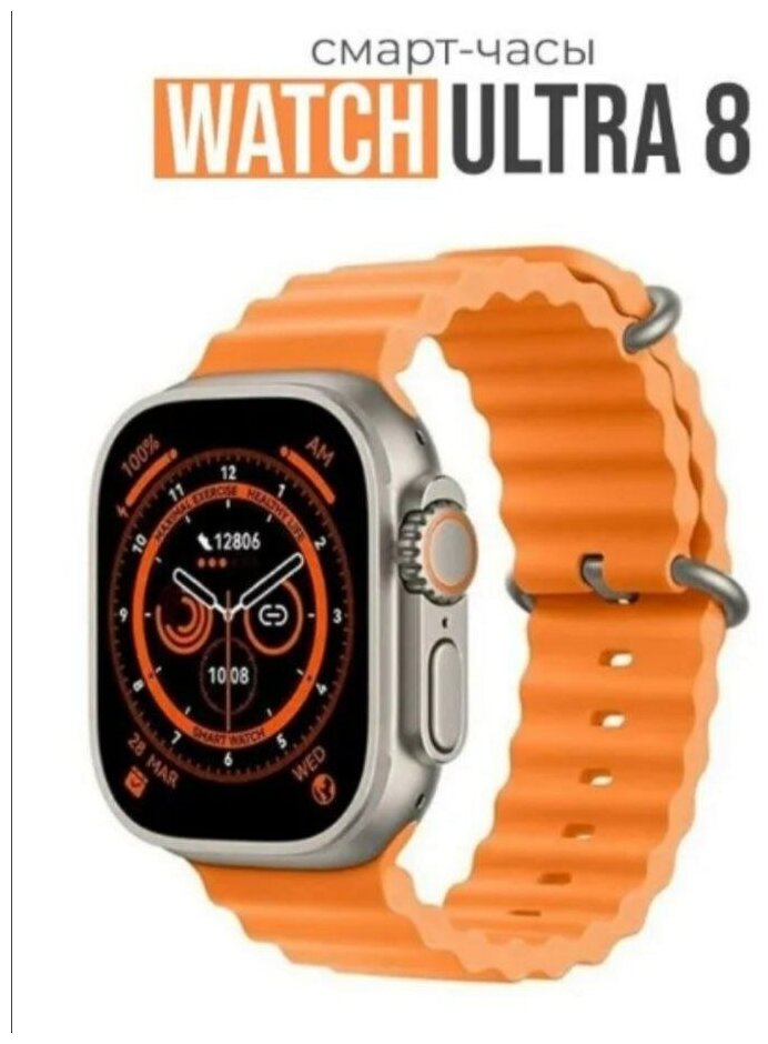 Умные часы Wearfit GS8+ Ultra / X8 Ultra, watch series 8, 49mm, золотистые, оранжевый ремешок интересное: