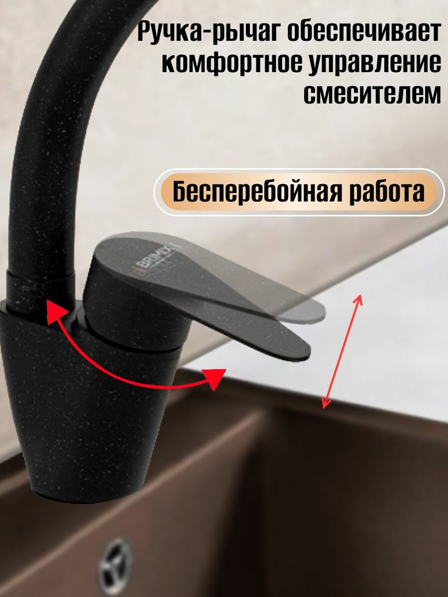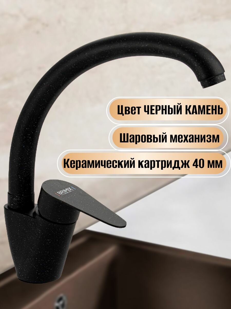 Смеситель кухонный Brimix 1069. Материал - Цинковый сплав, цвет - черный.