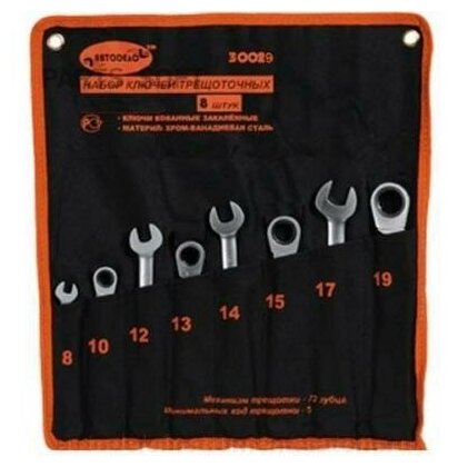Набор комбинированных трещоточных ключей АвтоДело 8 пр, 8-19 мм, сумка 30029