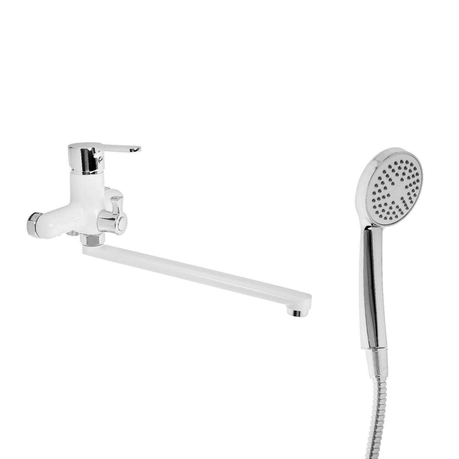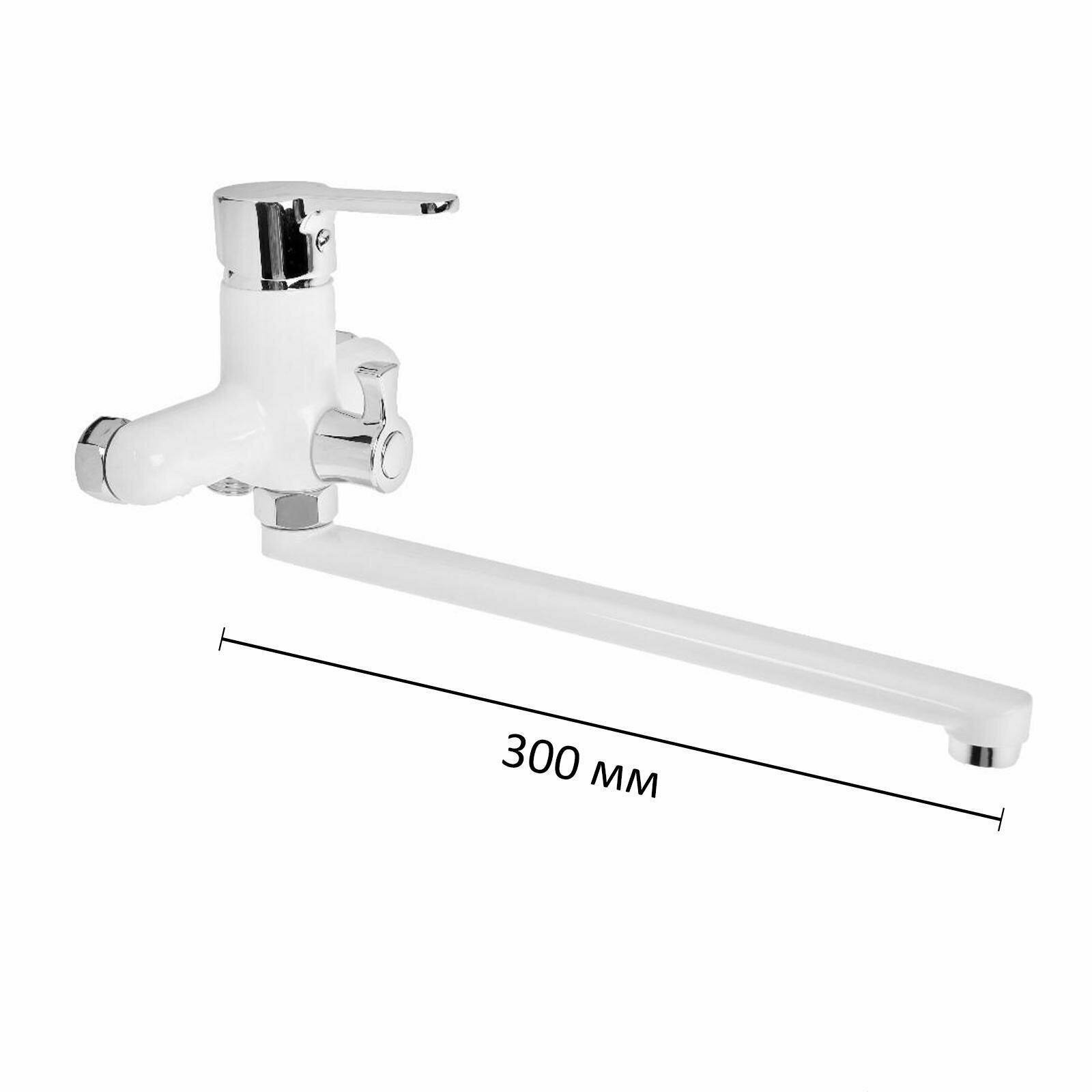 Смеситель ванна прямой нос 30 см (35) дивертор в корпусе Силумин Белый Accoona A7167G интересное: