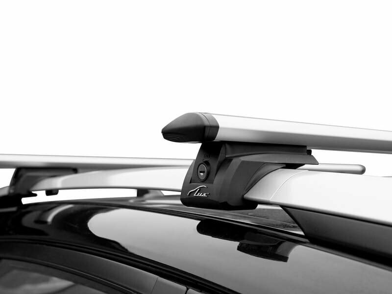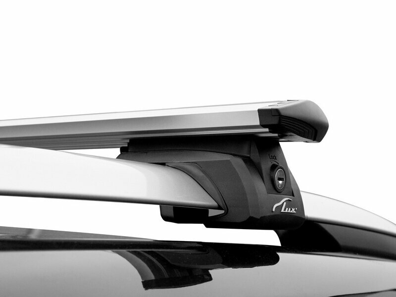 Багажник на крышу LUX элегант с замками, дуги аэро-тревел (82мм) 1,3м на Ниссан Кашкай+2 2008-2014 с рейлингами, арт:21145-16