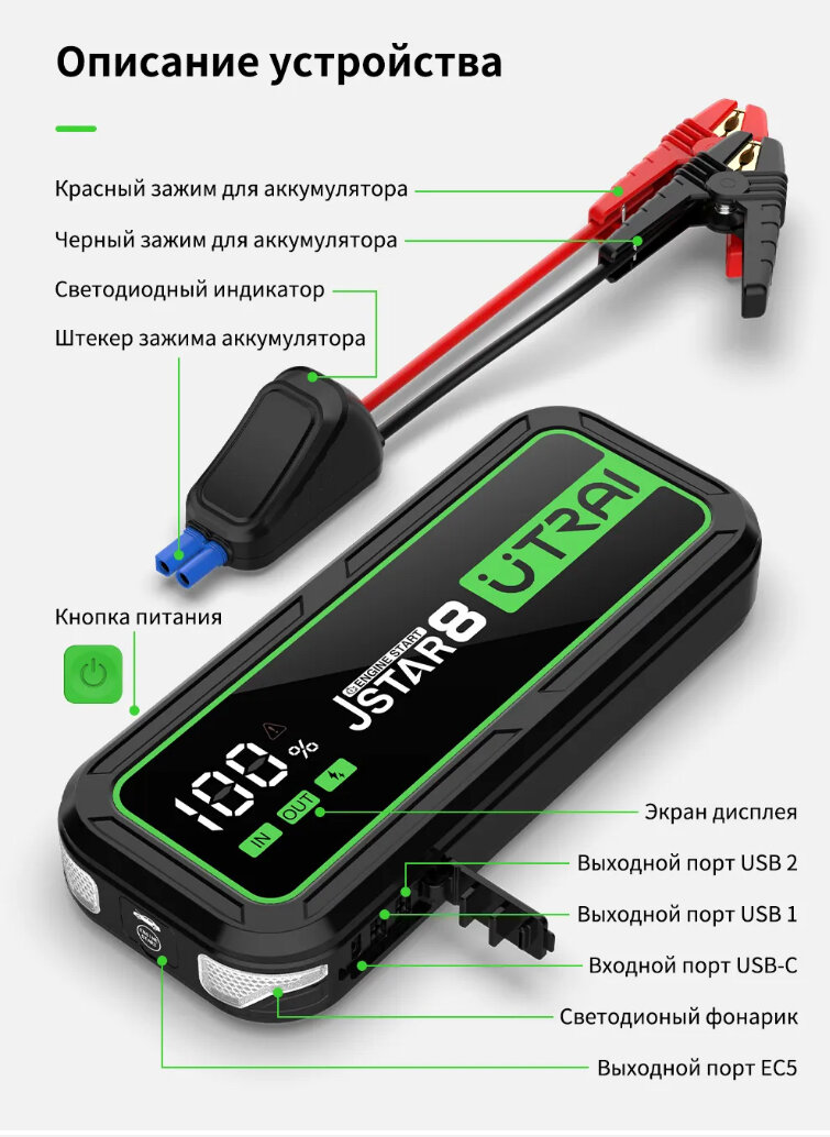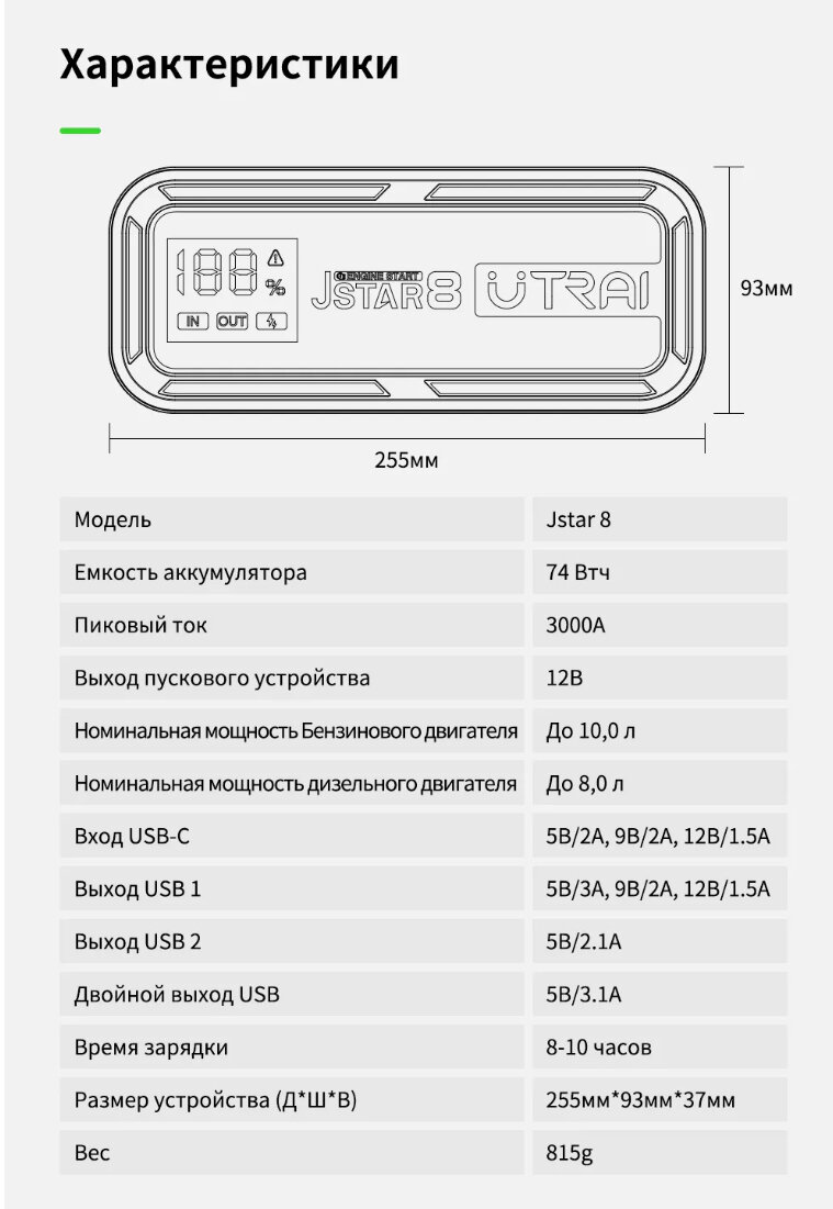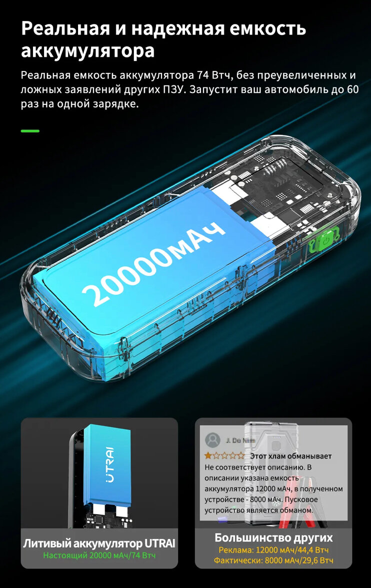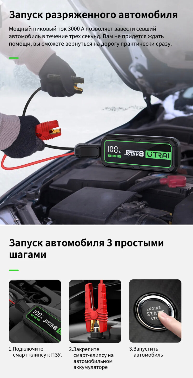 Пуско-зарядное устройство Utrai Jstar 8 20000mAh 3000A интересное: