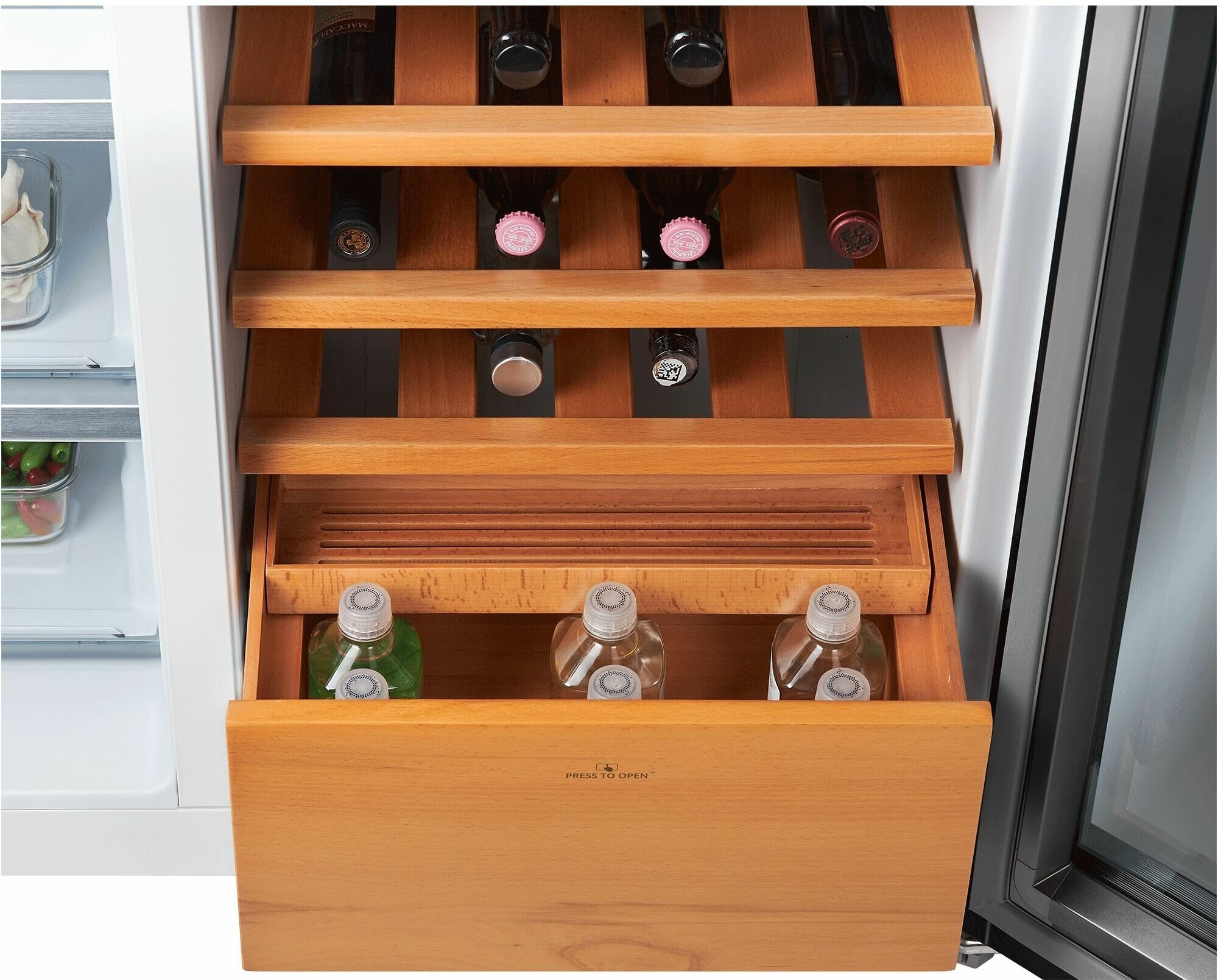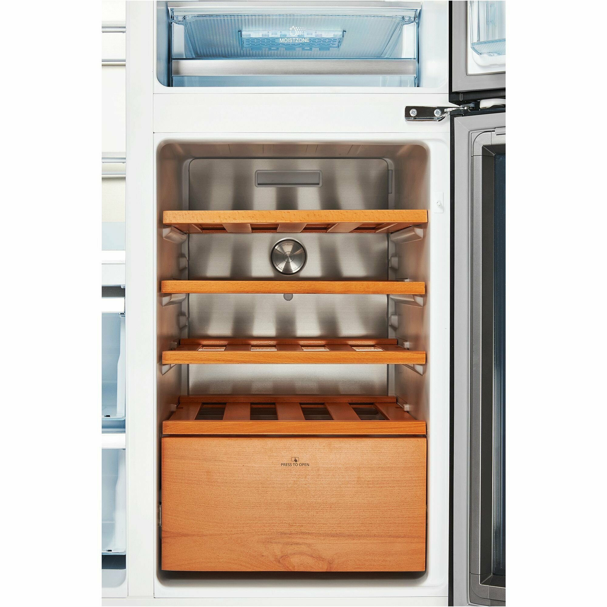 | Дополнительная информация | отдельная камера винное отделение (объемом 127 л на 16 бутылок) на 3 климатические зоны с температурным режимом от 5 до 16 С, буковыми полками, дезодоратором, стеклом с УФ защитой, и выдвижным ящиком |