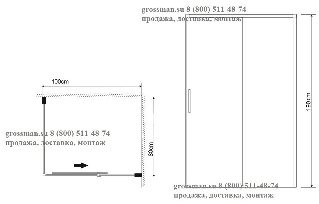 Душевое ограждение Grossman GR-D100-P80 Fly1 (100*80*190) прямоугольник, дверь раздвижная