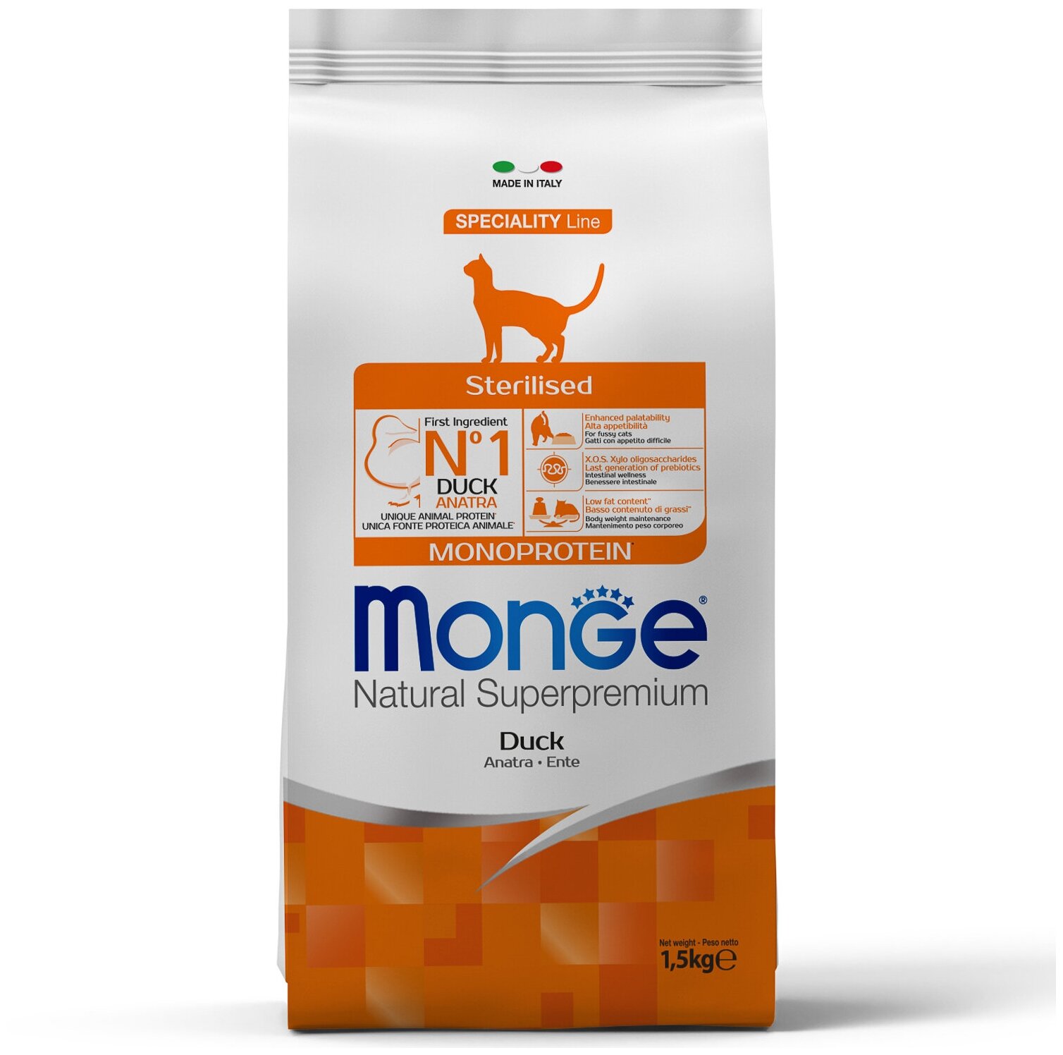 Monge Cat Monoprotein Sterilised Duck корм для стерилизованных кошек с уткой, 1,5 кг