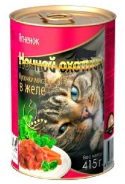 Корм консервированный для кошек Ночной охотник 415гр в желе Ягненок, 1 шт.