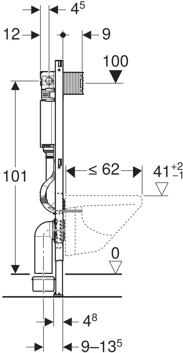 Монтажный элемент для подвесного унитаза, H112, Geberit Duofix Omega 12 см 111.060.00.1
