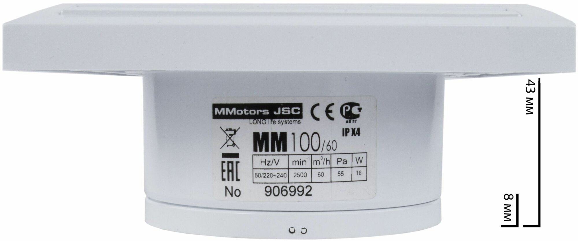Вентилятор вытяжной для ванны MM 100/60 сверхтонкий (35мм), квадратный, серый, с обратным клапаном Mmotors интересное: