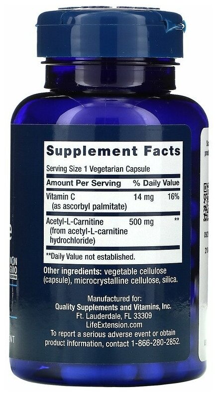 Life Extension Acetyl-L-Carnitine 500 мг 100 vcaps
