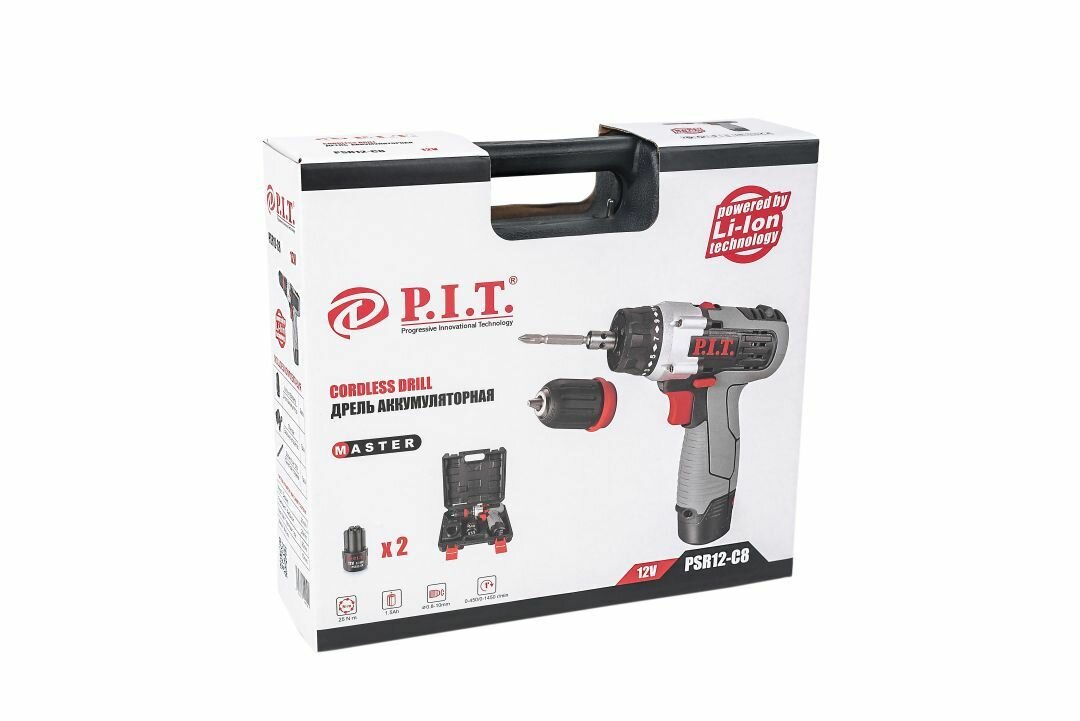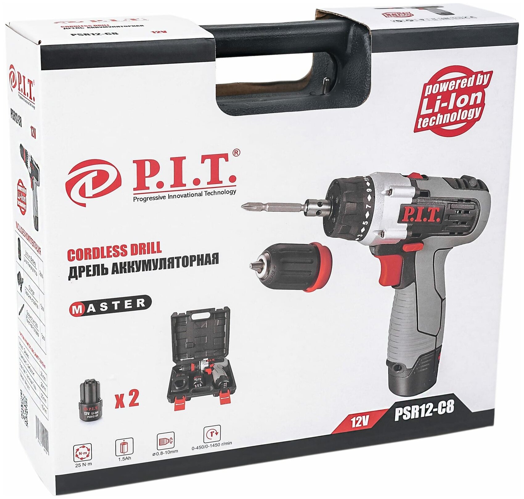 Дрель аккумуляторная P.I.T. PSR12-C8, 12 В, 2 АКБ 1.5 А/ч