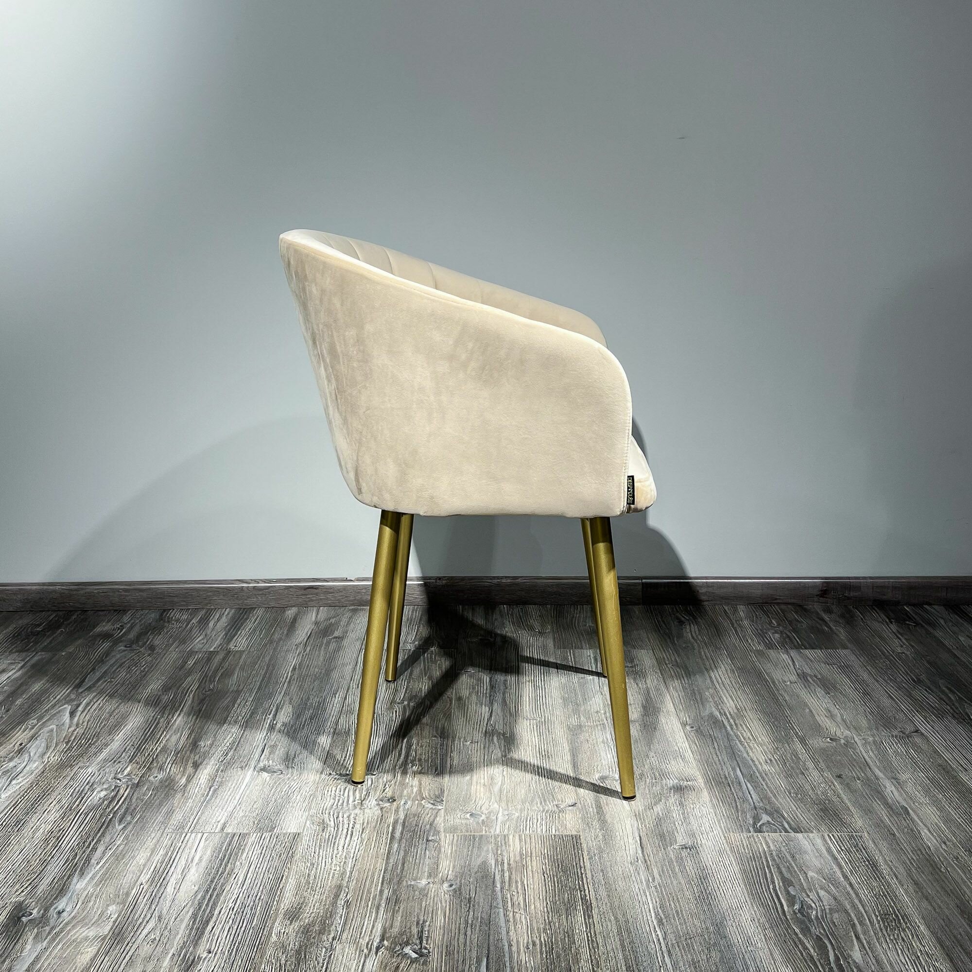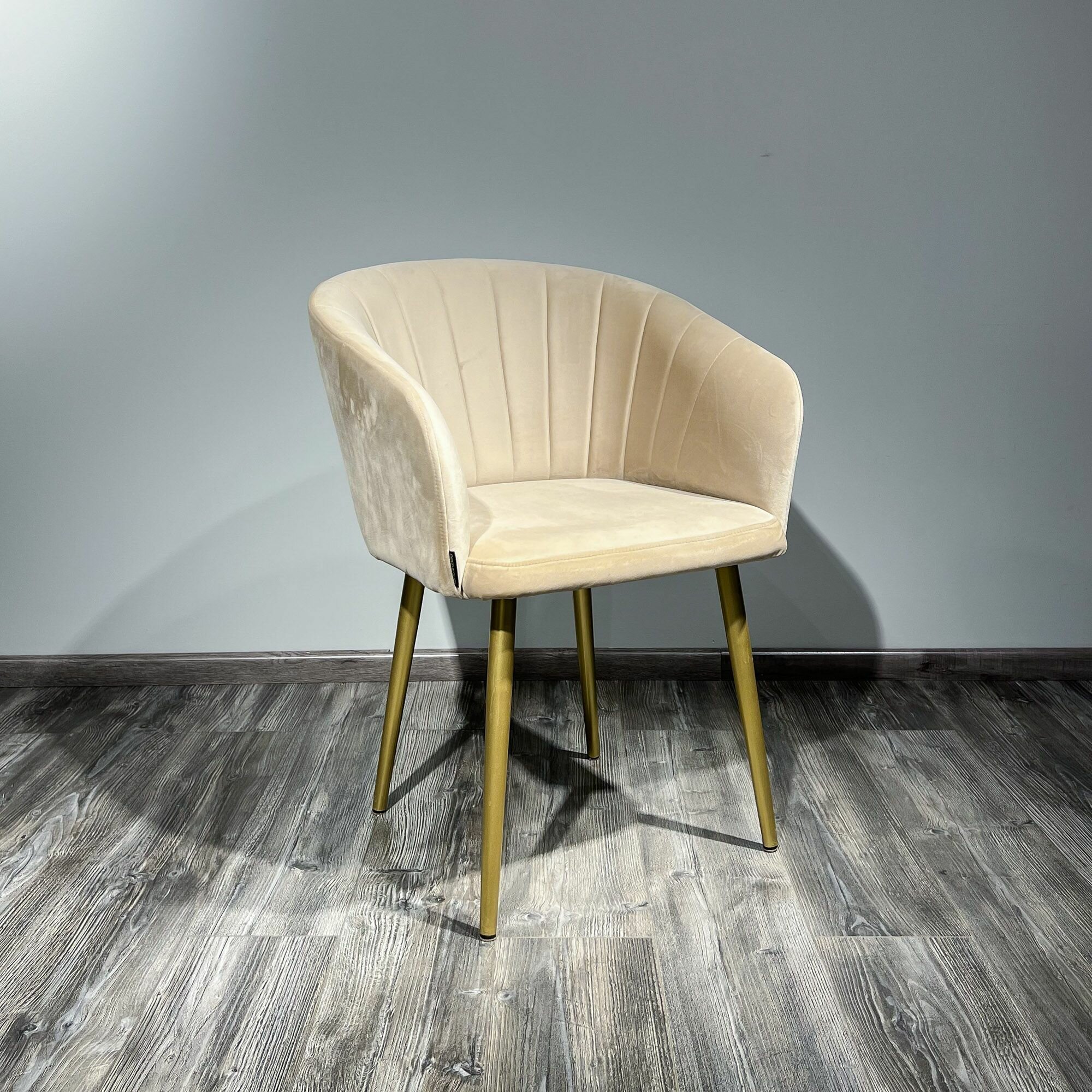 Стул для кухни DeepHouse Гарда бежевый бархат ножки золото для дома/для гостиной/для столовой/для кафе /кухонный стул/стул кухонный