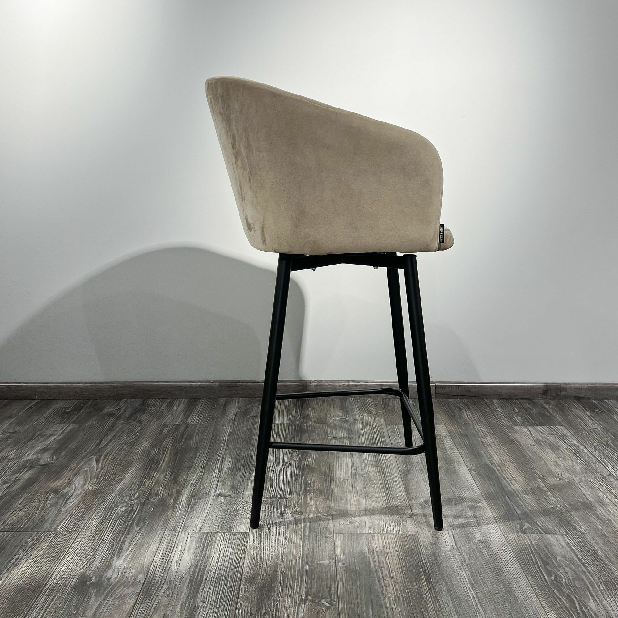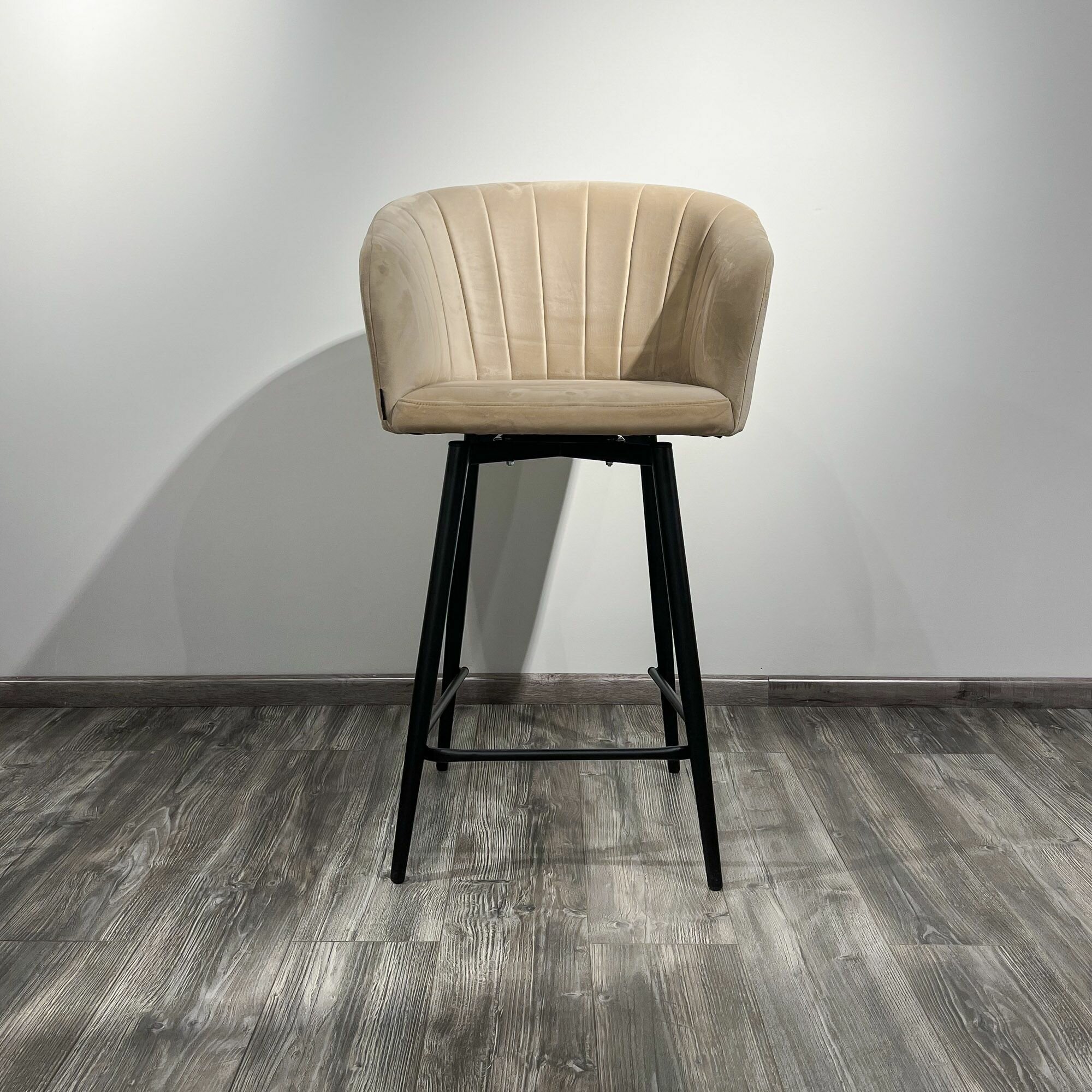 Стул полубарный DeepHouse Стул Гарда бежевый бархат ножки черные для кухни, гостиной