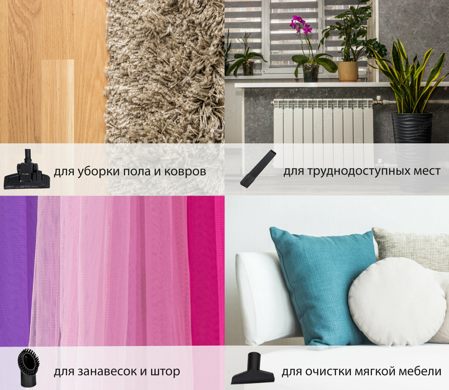 | Насадки в комплекте | Для уборки пола |