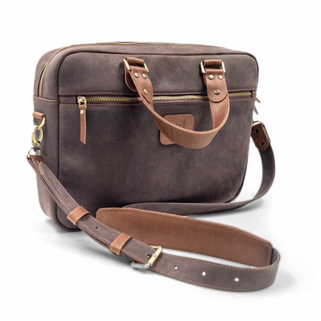Небольшая кожаная сумка для ультрабука / макбука / ноутбука J.Audmorr до 14 дюймов, Cardiff S Brown, натуральная кожа, ручная работа