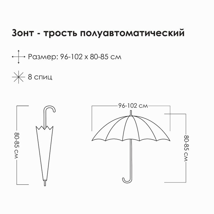 Зонт - трость полуавтоматический «Города», 8 спиц, R = 49 см, ц