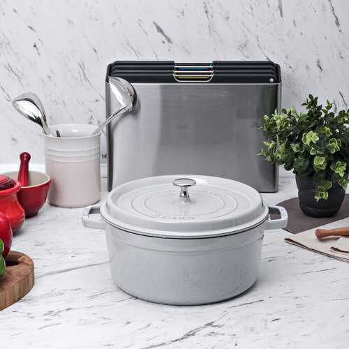 Кокот круглый чугунный 5,25 л диаметр 26 см, цвет белый трюфель, Staub, Франция, 11026107