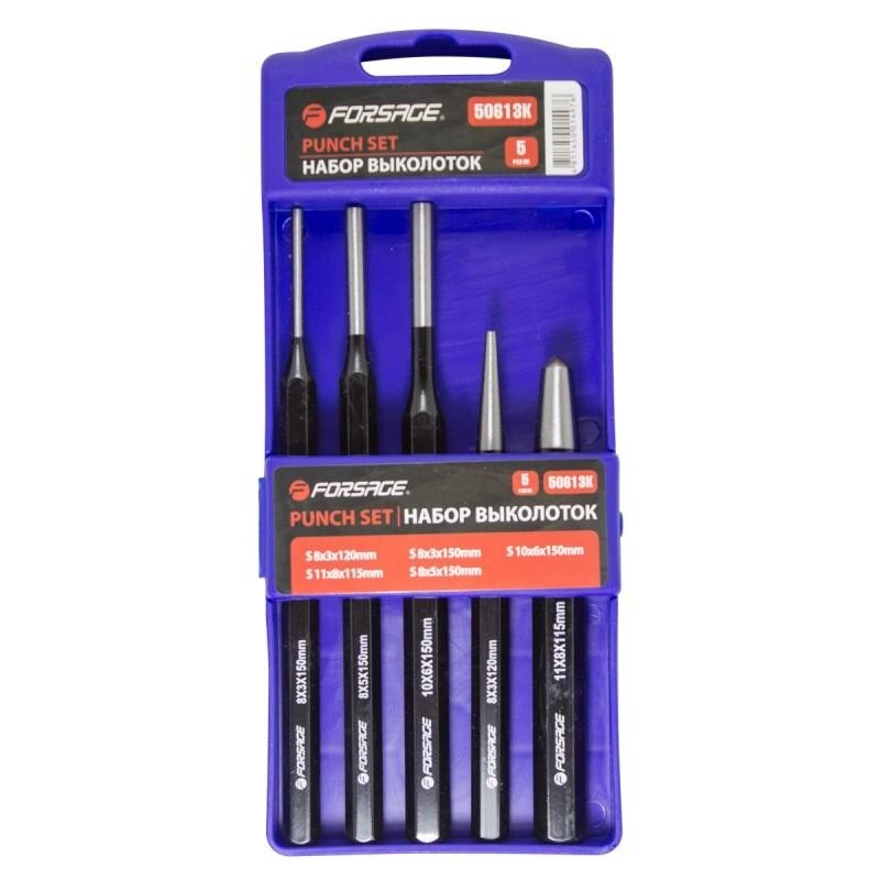 FORSAGE F-50613K Набор выколоток 3х120мм,3х150мм,6х150мм,5х150мм,кернер 8х115мм, 5пр,в пластиковом футляре 1шт