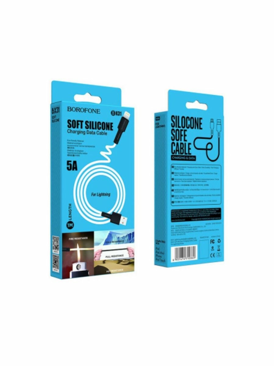 Кабель USB BOROFONE BX31 Silicone USB - Lightning, 5A, 1 м, белый