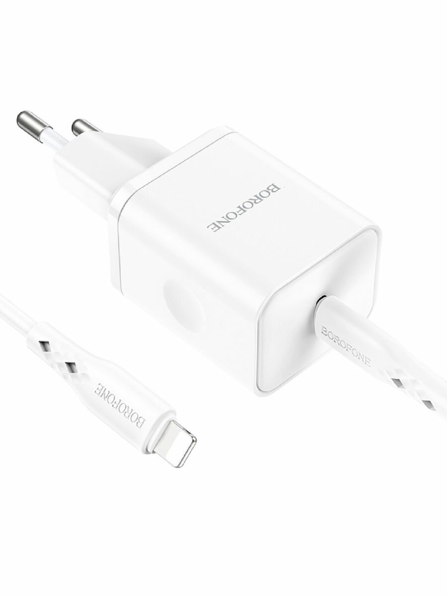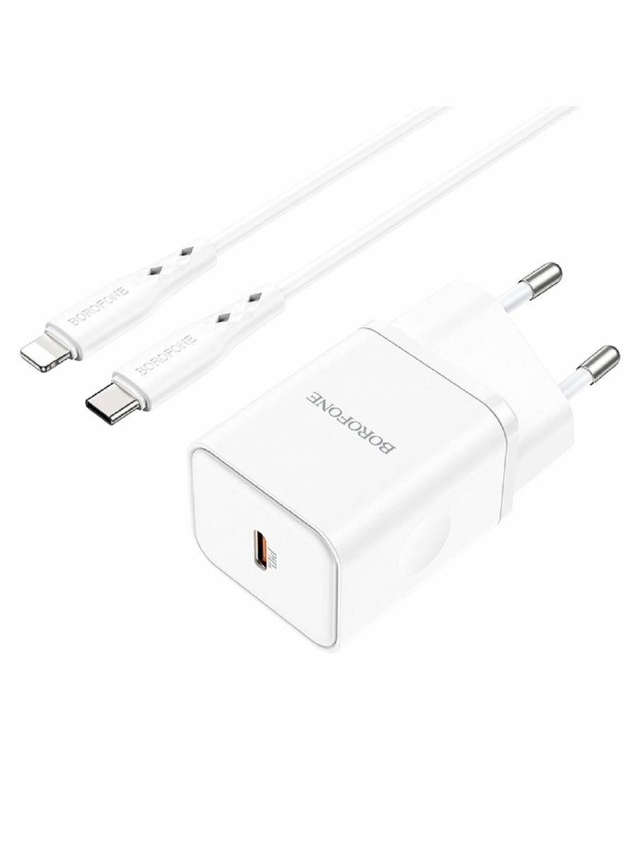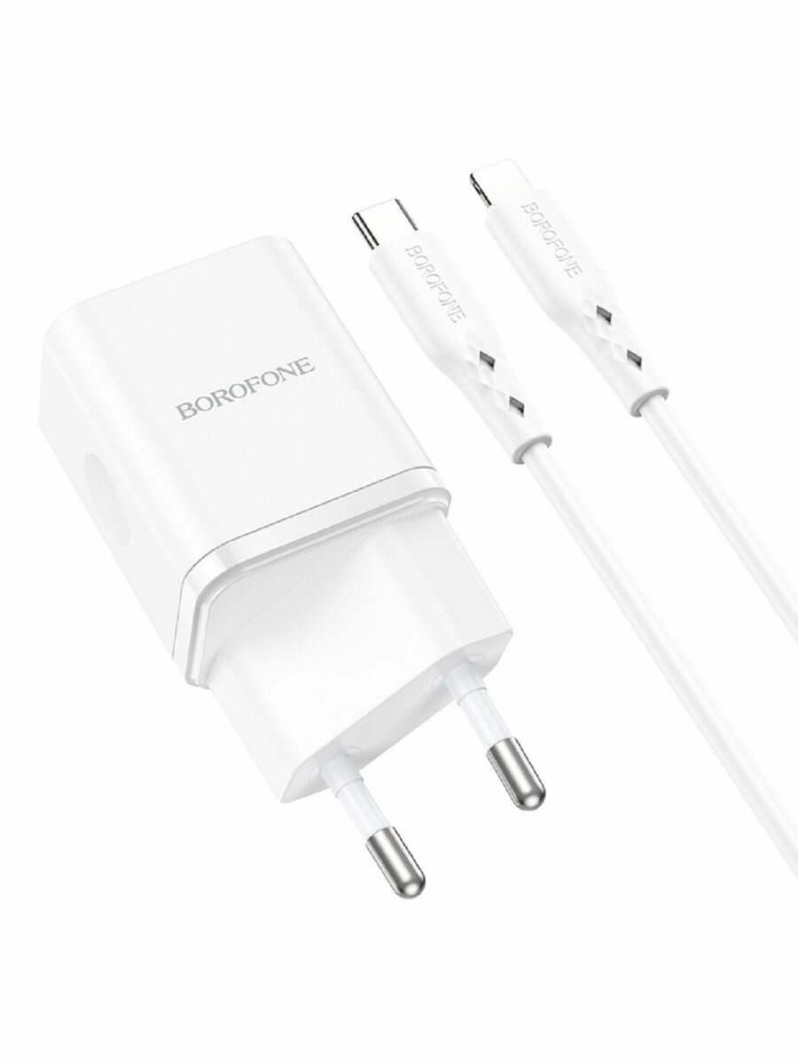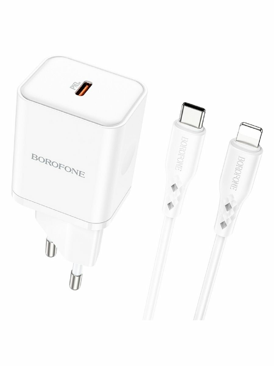 Сетевое зарядное устройство BOROFONE BN6 Field 1xUSB-C PD20W, 3A + кабель USB-C Lightning 8-pin, 1м (белый)